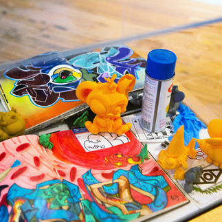 Those Nasty Kidz reflects their spirit of growth and collaboration by inviting the community into an interactive and hands-on environment. All audiences are welcome to make the space their own in a recreation of the artists’ studio by immersing themselves in the work, and doing some sketching with provided materials in the Arnheim Gallery. This will be a space to step into the minds of the artists, and partake in the process of making, socializing, and inspiring one another.